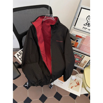 年春秋新款满天星两面穿情侣夹克男女防风百搭条纹冲锋衣外套