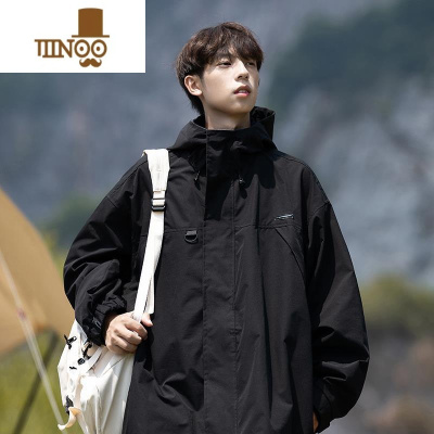 YANXU日系外套男士宽松休闲户外运动连帽冲锋衣潮牌工装开衫夹克