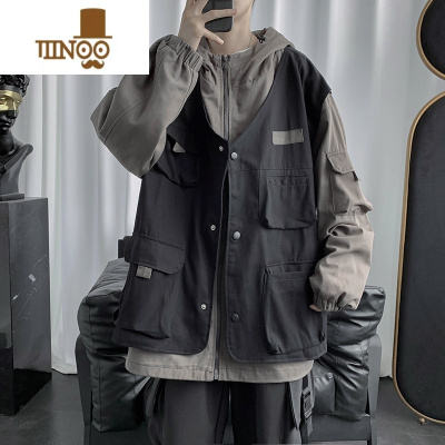 YANXU2023假工装夹克男潮牌bf百搭机能冲锋衣宽松帅气连帽外套