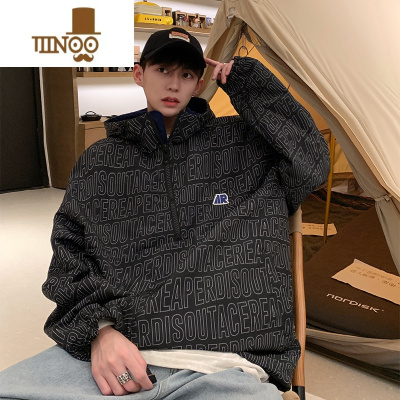 YANXU连帽外套男潮牌半拉链套头夹克ins潮流宽松字母机能冲锋衣