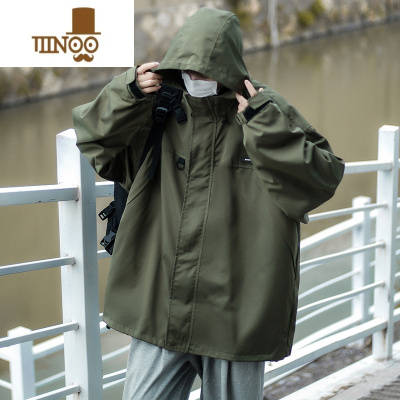 YANXU冲锋衣男款潮牌日系工装连帽外套痞帅潮流百搭休闲夹克衣服