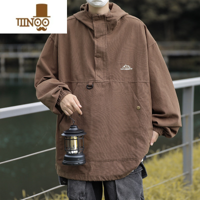 YANXU半拉链冲锋衣外套男秋季美式复古潮牌痞帅宽松机能风卫衣连帽夹克