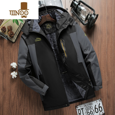 YANXU冲锋衣男冬季可拆卸帽户外登山潮牌保暖加绒加厚棉服外套防水风衣