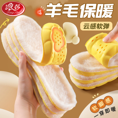 浪莎羊毛鞋垫女加绒加厚皮毛一体保暖棉运动踩屎感吸汗防臭冬季