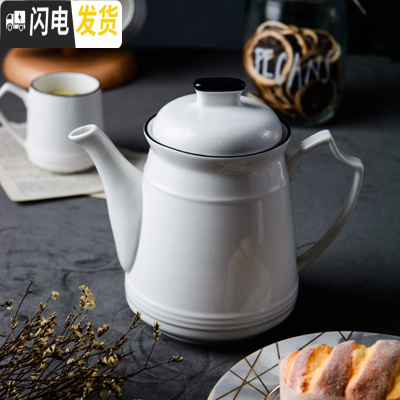 三维工匠超大容量家用耐热水壶 陶瓷杯具水杯 简约冷水壶凉水壶茶具水具 黑线单壶1300送壶垫/杯刷