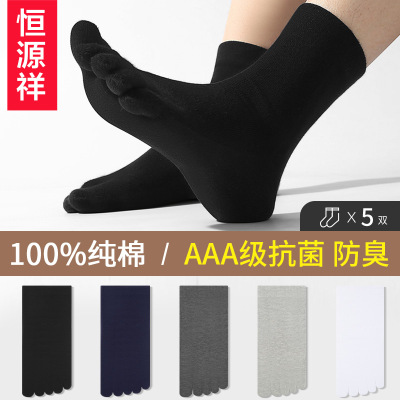 恒源祥五指袜子男士纯棉防臭吸汗分趾脚趾中筒全棉袜春秋冬季长袜