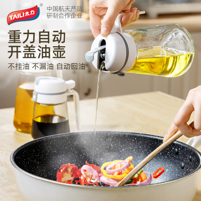 太力自动开合开盖玻璃油罐壶厨房用重力感应油壶不挂油不滴油油瓶