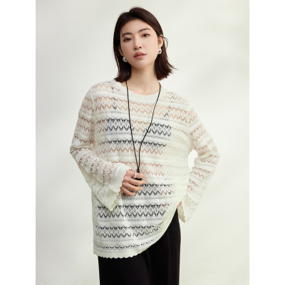 高级感喇叭袖钩花镂空针织衫女25新款微透内搭防晒罩衫春季上衣女