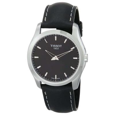 TISSOT男表商务休闲皮带黑盘不锈钢表壳石英腕表T0354461605102