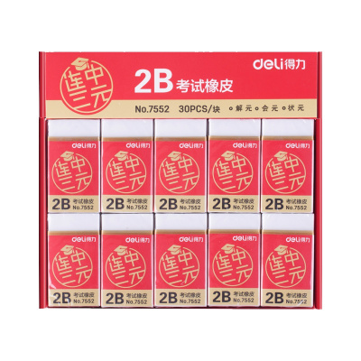得力(deli)7552学生考试橡皮擦 10个 连中三元系列2B橡皮 美术橡皮 美术文具绘图 绘画用具 学生文具