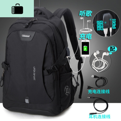 背包男韩版时尚潮流高中大学生书包电脑出差旅行旅游大容量双肩包NEW LAKE 285双接口黑色配耳机