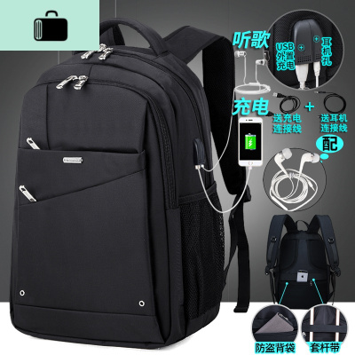 背包男韩版时尚潮流高中大学生书包电脑出差旅行旅游大容量双肩包NEW LAKE 288双接口黑色配耳机