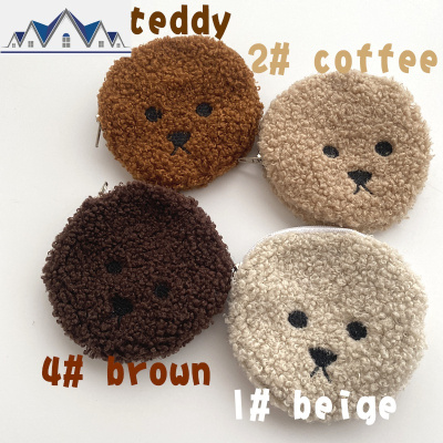ins韩风可爱泰迪小狗软萌羊羔毛零钱包耳机包迷你刺绣包包收纳袋 三维工匠收纳包