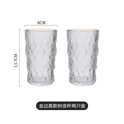 日式金边玻璃杯透明耐热水杯套装家用冰川杯子果汁饮品杯 描金冰川杯[高杯2只装]