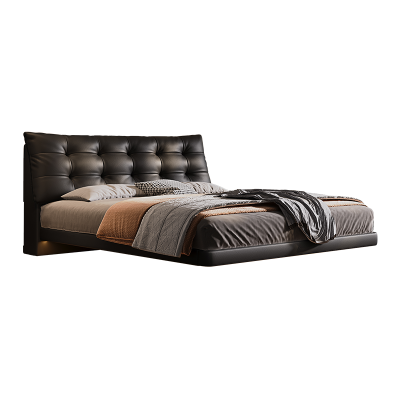 极窄系列头层牛皮床主卧次卧双人大床实木真皮极简婚床