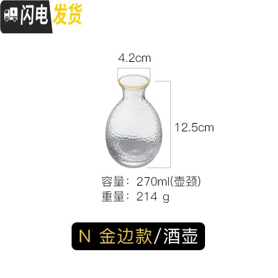 三维工匠日式玻璃创意白酒酒具套装家用小号酒杯子分酒器酒壶清酒杯一口杯 N金边单只酒壶
