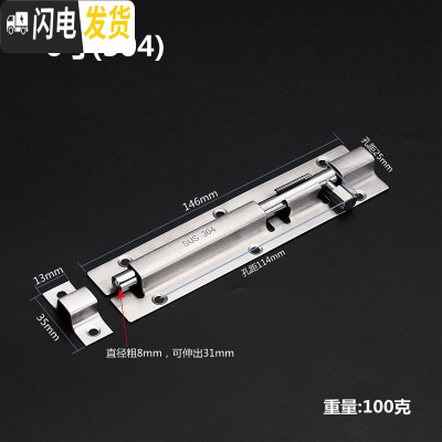 三维工匠加厚304不锈钢插销防盗后家用挂锁扣栓锁锁扣搭固定卡扣 6寸[304不锈钢]房门安全扣