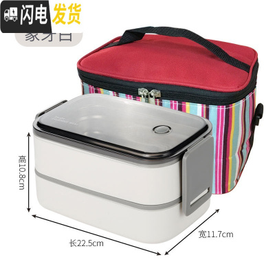 三维工匠304不锈钢饭盒便当盒保温学生食堂便携分格型上班族餐盒套装 连扣长方形2层(白色)含袋