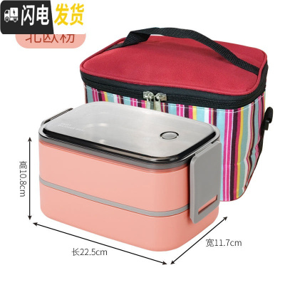 三维工匠304不锈钢饭盒便当盒保温学生食堂便携分格型上班族餐盒套装 连扣长方形2层(粉色)含袋