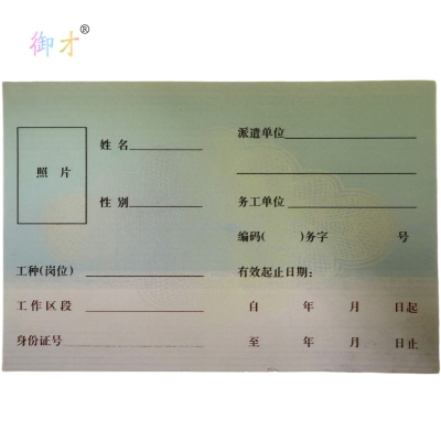 御才 务工证 92*136MM 张