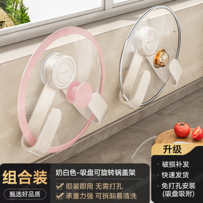 丽佳邦锅盖架壁奶白色-吸盘可旋转锅盖架2个装