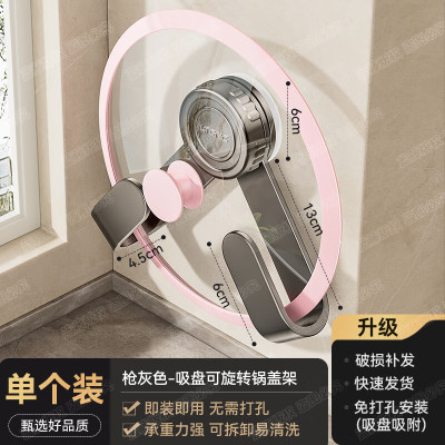 丽佳邦锅盖架壁枪灰色-吸盘可旋转锅盖架1个装