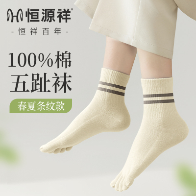 恒源祥五指袜女纯棉防臭春夏季薄款中筒袜子女短袜棉袜分趾袜子女