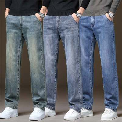 经典秋冬中年牛仔裤加厚男款宽松直筒裤子弹力商务休闲百搭男长裤