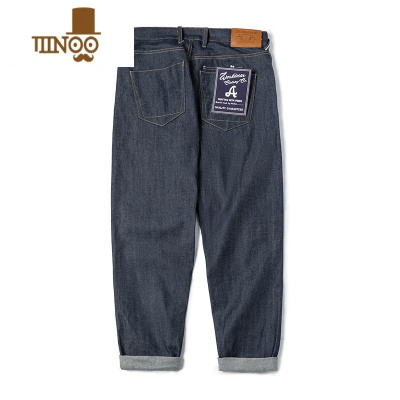 YANXU工装日系复古原牛赤耳牛仔裤丹宁直筒养牛中腰长裤子男士