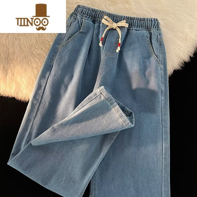 YANXU牛仔裤男ins潮牌系绳直筒宽松休闲长裤秋季潮流港风复古阔腿裤子
