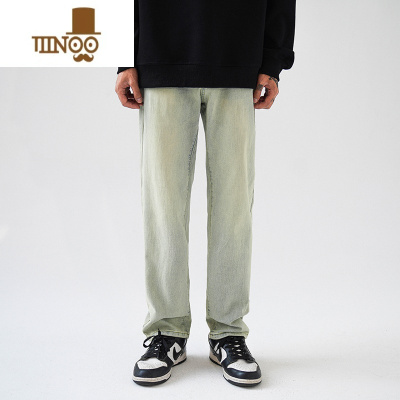 YANXU新款直筒牛仔裤男款美式潮牌vibe复古宽松百搭宽松阔腿长裤子
