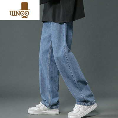新款春秋季宽松直筒牛仔裤男款美式潮牌阔腿百搭长裤休闲裤子
