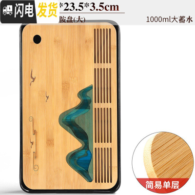 三维工匠茶盘家用小型茶台简约蓄水式功夫茶具托盘两人用迷你茶海日式 16黑长方(绿芜湖)密胺盘(大)