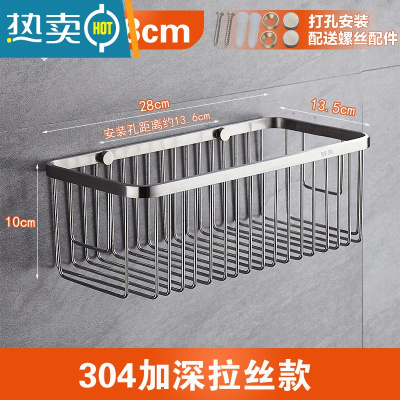 敬平304不锈钢浴室置物架单层长方形网篮壁挂卫生间厕所淋浴房洗漱架 28CM 拉丝加深款 打孔
