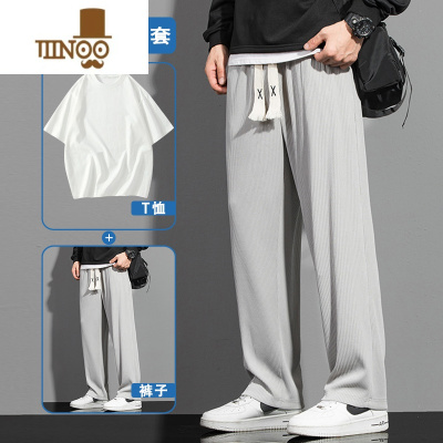 YANXU华夫格裤子男款夏季薄款垂感冰丝裤子宽松直筒休闲长裤运动裤
