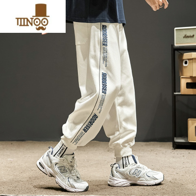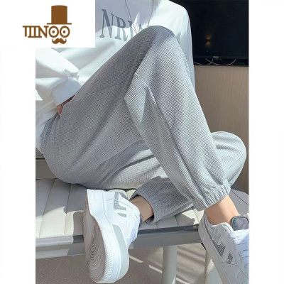 YANXU冰丝华夫格卫裤男百搭ins潮流夏款运动长裤宽松束脚休闲男士裤子