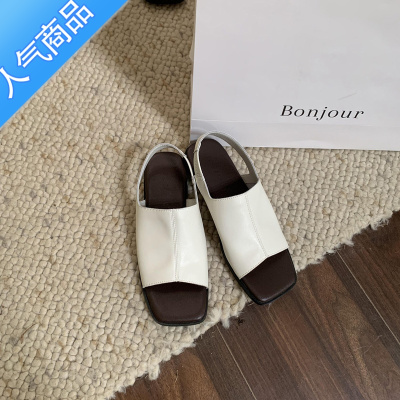 SUNTEK韩国凉鞋女2023年夏季新款百搭时尚复古港风方头露趾平底罗马鞋