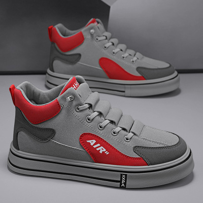 9月秋季新款潮流高帮百搭个性时尚布鞋透气舒适皮革拼接休闲板鞋