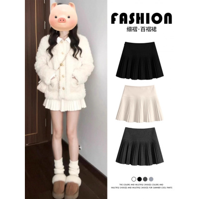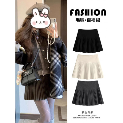 毛呢细褶jk短裙子女秋冬新款高腰显瘦a字裙小个子百褶半身裙