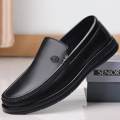 新款闲皮鞋男真皮软皮软底男鞋中老年年男士爸爸鞋懒人鞋豆豆鞋