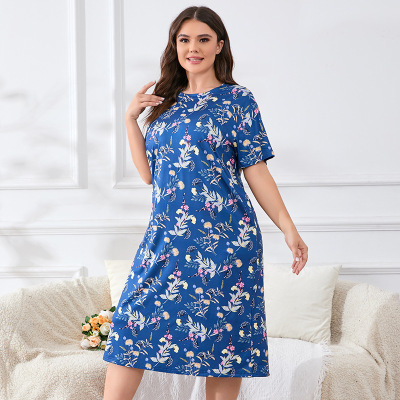 2025新款TEMU加肥加大女士短袖睡裙可外穿