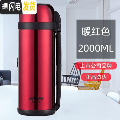 三维工匠不锈钢保温杯壶2000超大容量居家旅行暖水瓶户外车载暖壶 暖红色