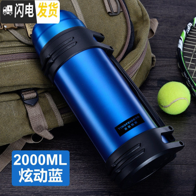 三维工匠保温杯男大容量保温壶暖水瓶户外便携车载旅行水杯水壶2 蓝色2000