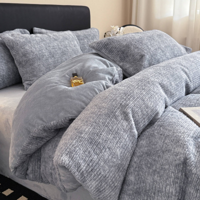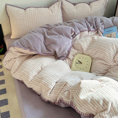 软呼呼!秋冬香芋紫牛奶绒床上四件套加厚保暖双面珊瑚绒床上用品