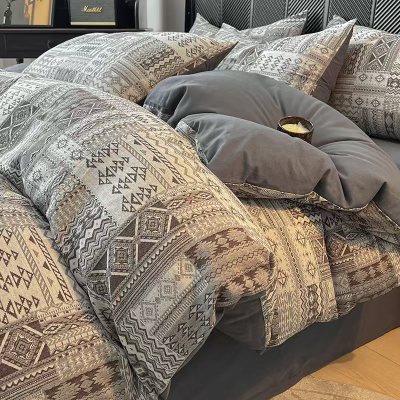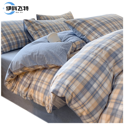 A类60支长绒棉简约加厚纯棉磨毛床上四件套全棉色织提花床上用品