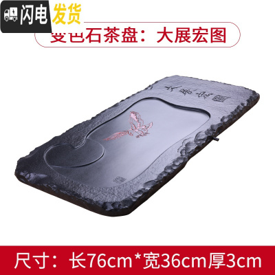 三维工匠变色石茶盘中式简约整块石头托盘家用乌金石石材黑金石茶台茶海 变色大展宏图76*37*3CM茶具