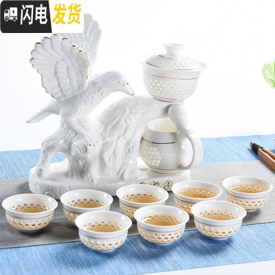 三维工匠白玉瓷半全自动茶具套装陶瓷家用创意懒人泡茶器功夫喝茶杯礼盒装 大展宏图玉瓷款(礼盒装)