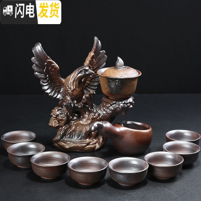 三维工匠茶具礼盒套装送礼办公室紫砂功夫茶具套装懒人家用半全自动泡茶杯 柴烧-大展宏图(旋转)