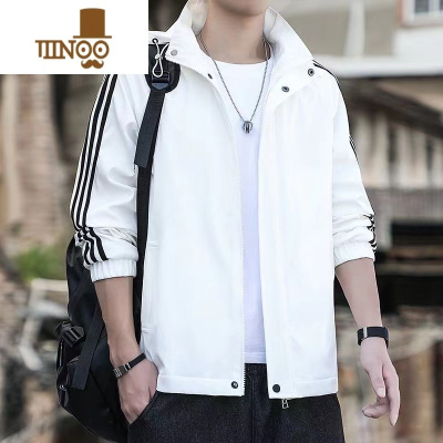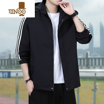 YANXU秋季薄款外套男2023新款三条杠可脱卸帽工装夹克休闲百搭运动风衣
