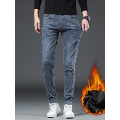 牛仔裤加绒男春秋款聚热锁温休闲裤男士简单品质舒适裤男